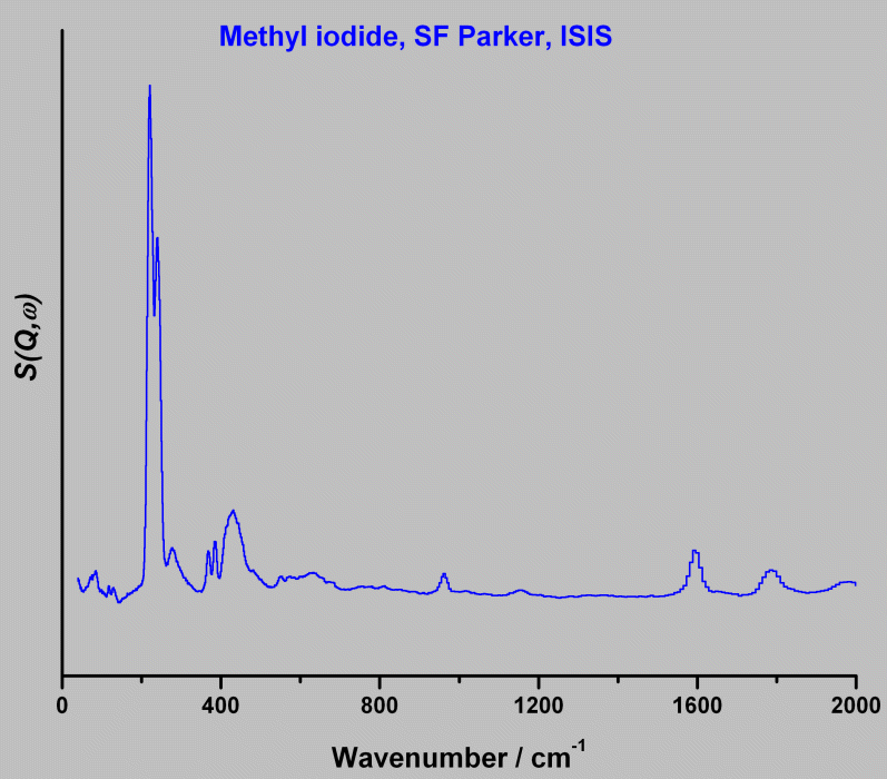 Inelastic Neutron Scattering spectrum of Methyl iodide, CH₃I, measured on the TOSCA instrument.