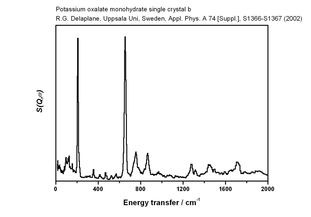 Inelastic Neutron Scattering spectrum of Potassium oxalate monohydrate single crystal b, K2C2O4.H2O, measured on the TFXA instrument. parallel to the bisector of the H-O-H angle.
