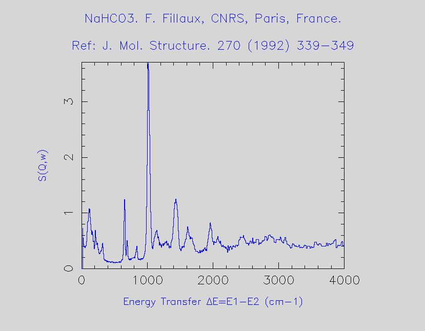 Inelastic Neutron Scattering spectrum of Sodium hydrogen carbonate, NaHCO₃, measured on the TFXA instrument.