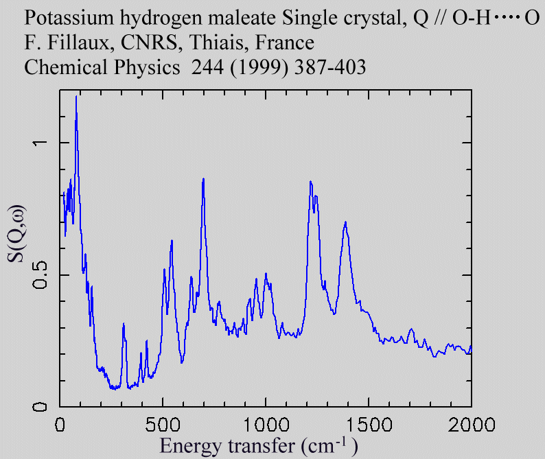 Inelastic Neutron Scattering spectrum of Potassium hydrogen maleate (Single Crystal), C₄H₃O₄K, measured on the TFXA instrument. Single crystal, Q // O-H - - - - O.