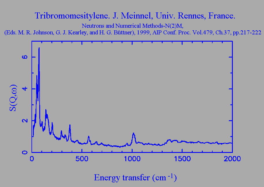 Inelastic Neutron Scattering spectrum of Tribromomesitylene, C₉H₉Br₃, measured on the TFXA instrument.