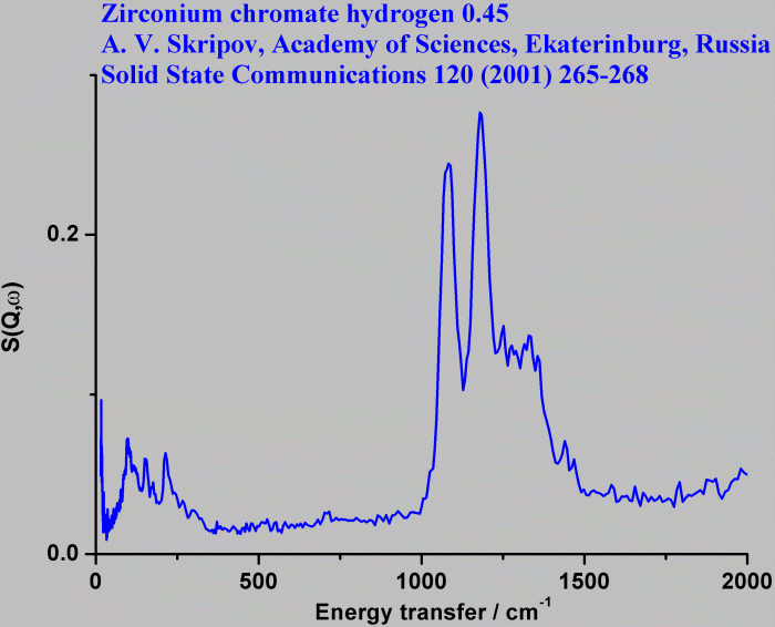 Inelastic Neutron Scattering spectrum of Zirconium chromium hydrogen 0.45, ZrCrH0.45, measured on the TFXA instrument.