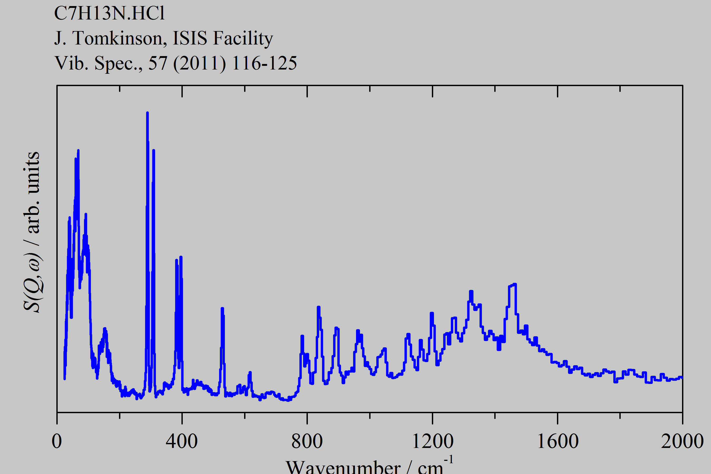 Inelastic Neutron Scattering spectrum of Quinuclidine hydrochloride, C7H13N.HCl, measured on the TOSCA instrument.