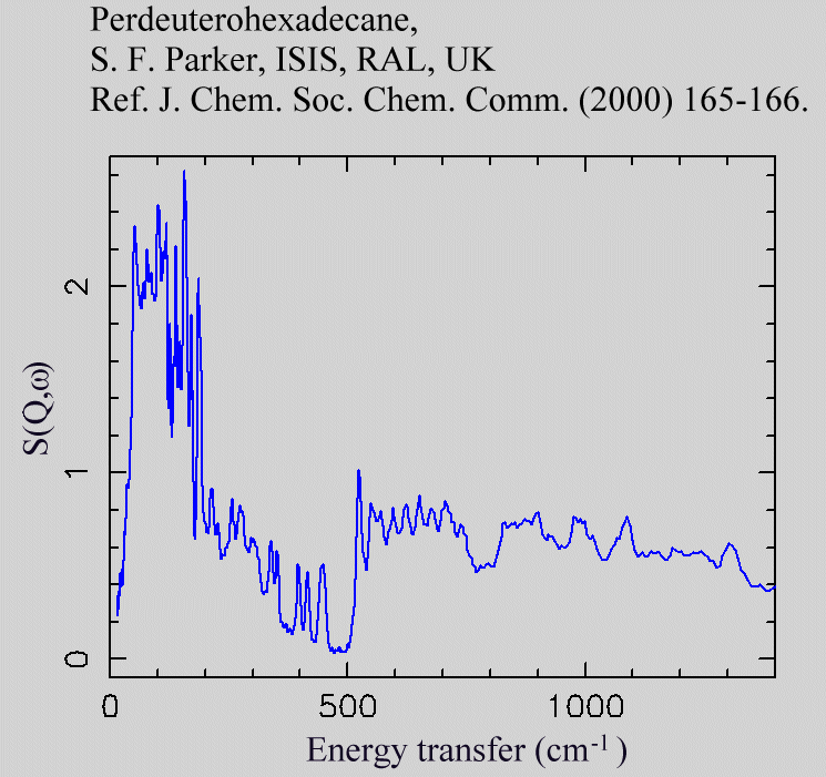 Inelastic Neutron Scattering spectrum of Hexadecane-D34, C₁₆D₃₄, measured on the TOSCA-1 instrument.
