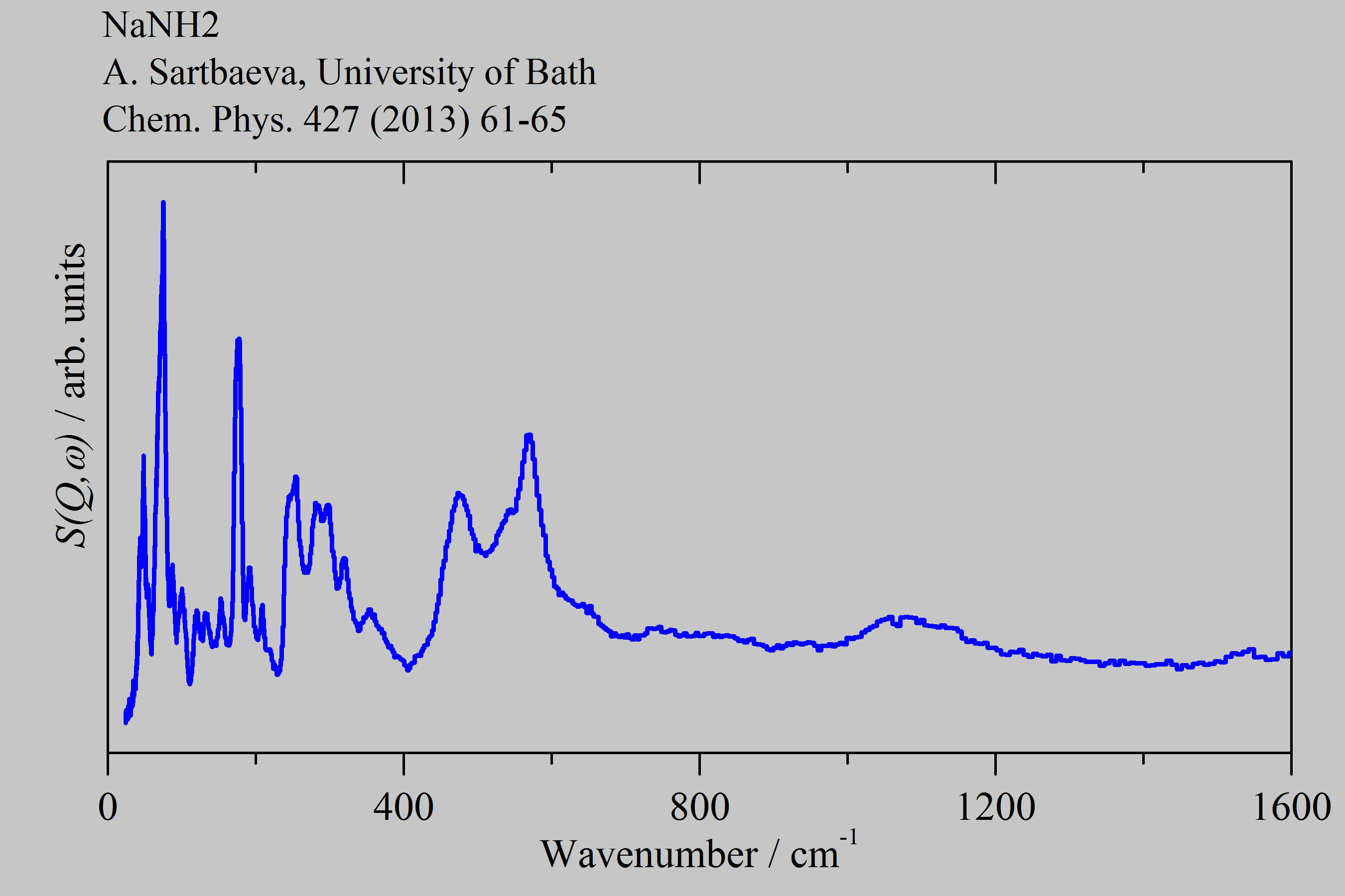 Inelastic Neutron Scattering spectrum of Sodium amide, NaNH₂, measured on the TOSCA instrument.