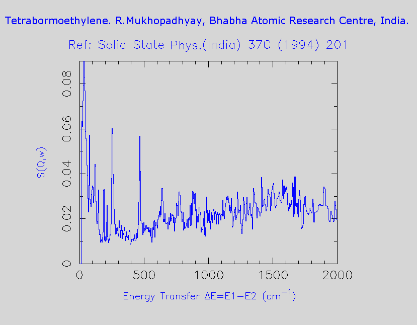 Inelastic Neutron Scattering spectrum of Tetrabromoethylene, C₂Br₄, measured on the TFXA instrument.
