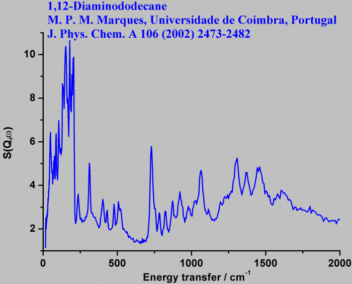 Inelastic Neutron Scattering spectrum of 1,12-Diaminododecane, H₂N-(CH₂)-NH₂ n=Dodecane, measured on the TOSCA instrument.