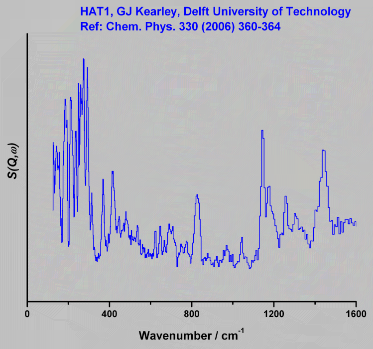 Inelastic Neutron Scattering spectrum of HAT1, C₂₄H₂₄O₆, measured on the TOSCA instrument.
