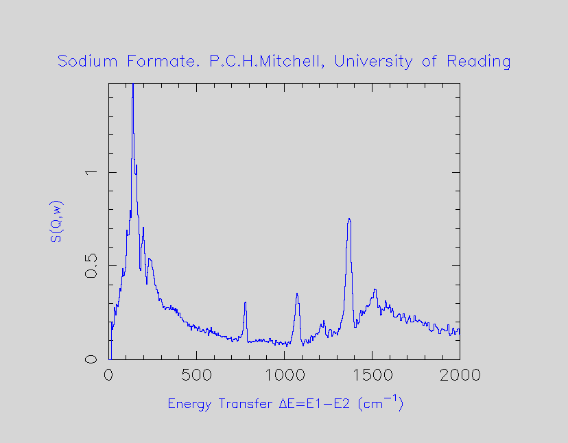 Inelastic Neutron Scattering spectrum of Sodium formate, HCO₂Na, measured on the TFXA instrument.