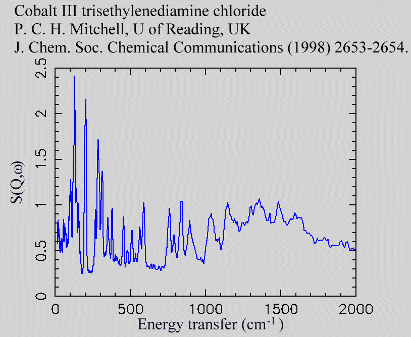 Inelastic Neutron Scattering spectrum of Cobalt (III) trisethylenediamine chloride, C₆H₂₄Cl₃CoN₆, measured on the TFXA instrument.