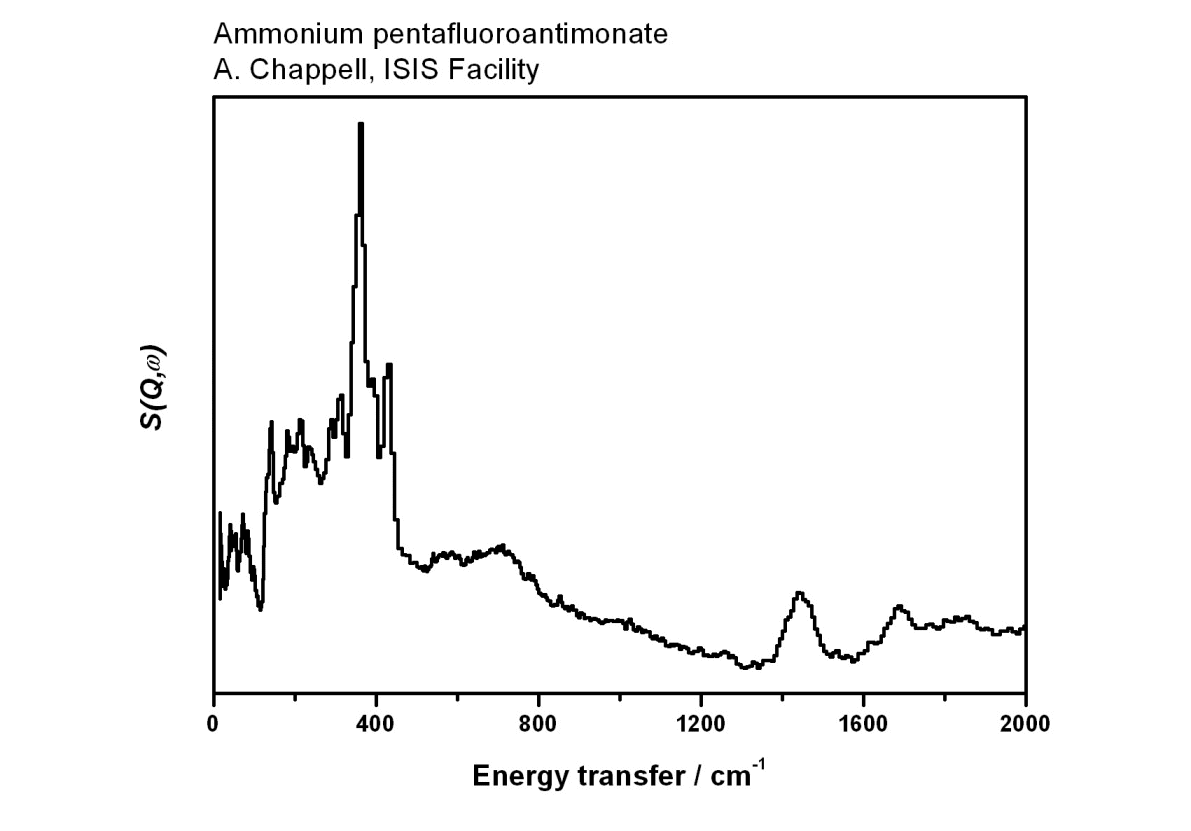 Inelastic Neutron Scattering spectrum of Ammonium pentafluoroantimonate, (NH₄)₂SbF₅, measured on the TFXA instrument.