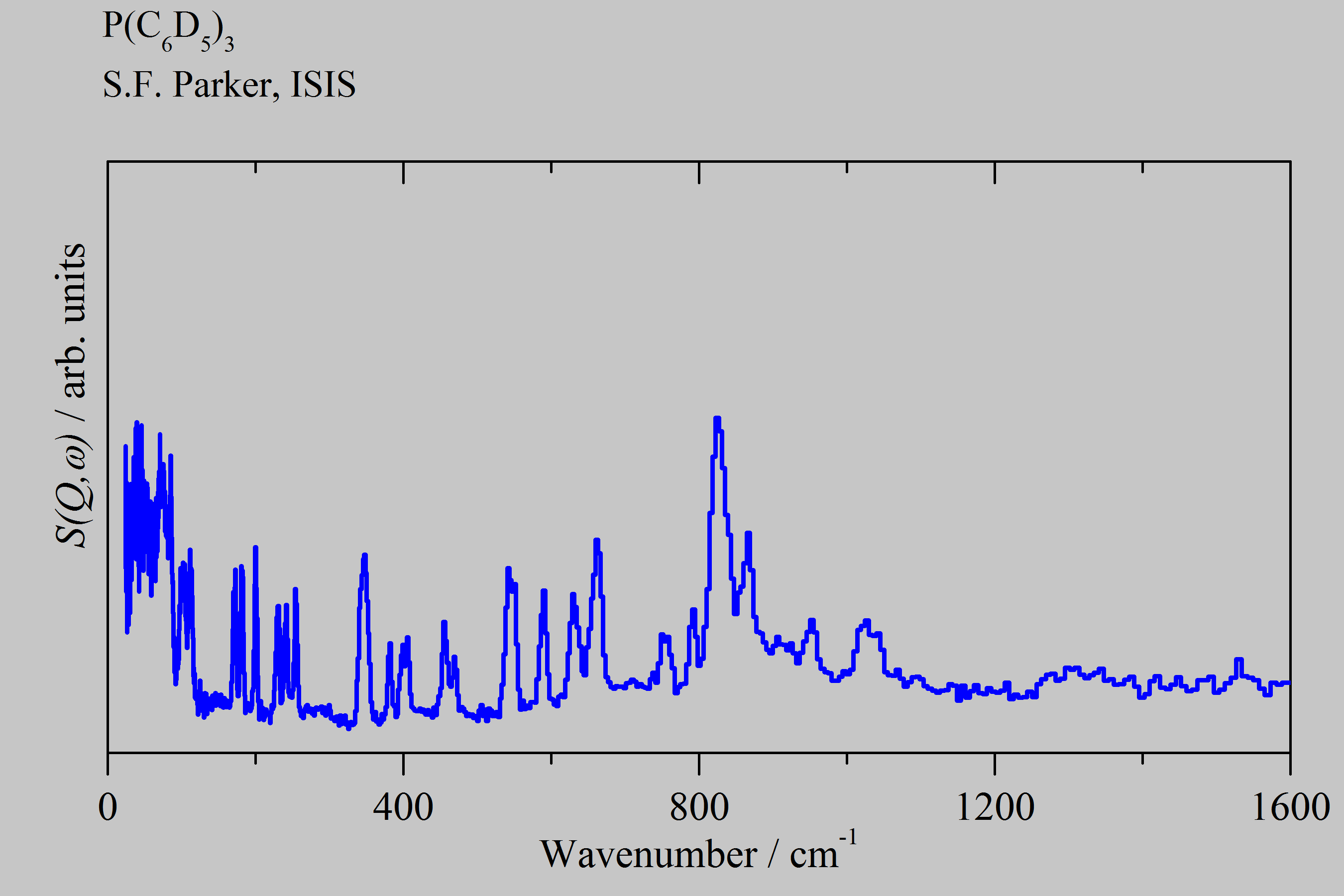 Inelastic Neutron Scattering spectrum of Triphenylphosphine-D15, P(C₆D₅)₃, measured on the TOSCA instrument.
