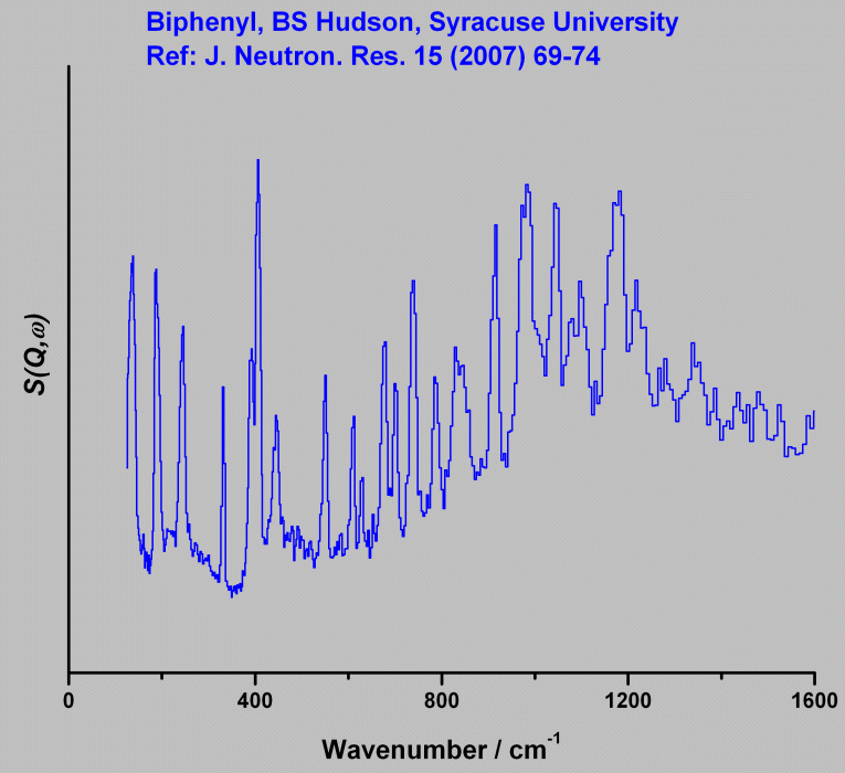 Inelastic Neutron Scattering spectrum of Biphenyl, C₁₂H₁₀, measured on the TOSCA instrument.