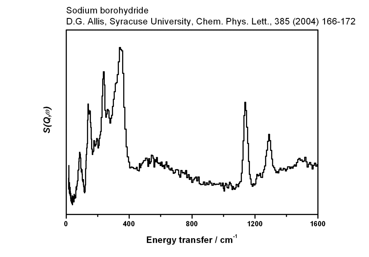 Inelastic Neutron Scattering spectrum of Sodium borohydride, NaBH₄, measured on the TOSCA instrument.