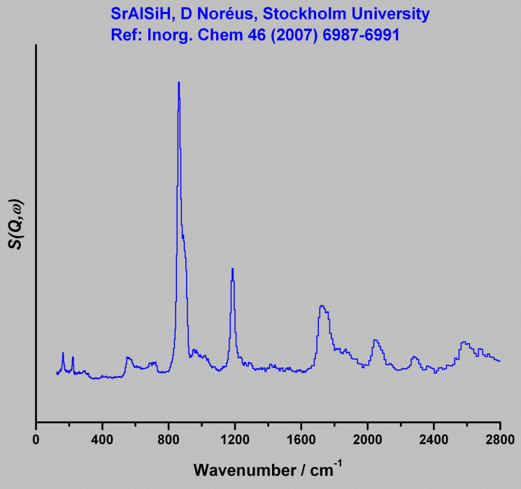 Inelastic Neutron Scattering spectrum of Strontium aluminium silicon hydride, SrAlSiH, measured on the TOSCA instrument.