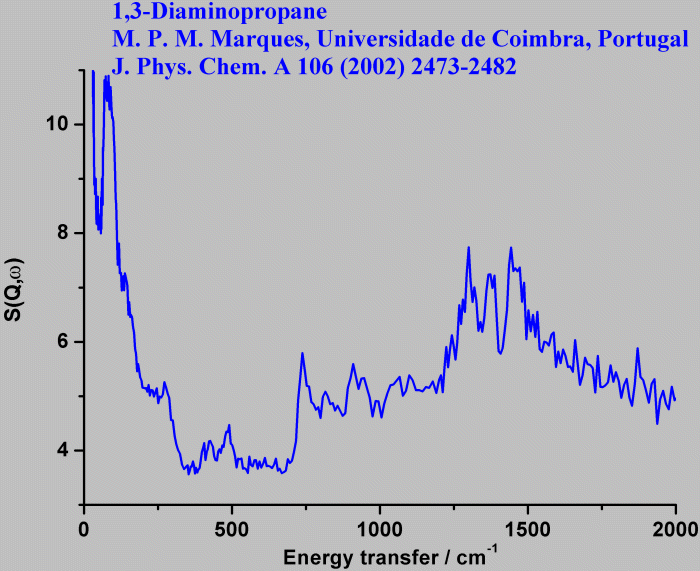 Inelastic Neutron Scattering spectrum of 1,3-Diaminopropane, H₂N(CH₂)₃NH₂, measured on the TOSCA instrument.