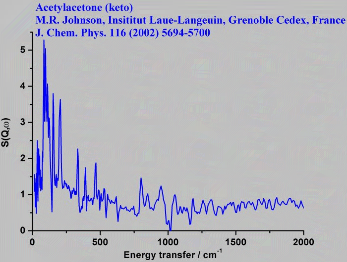 Inelastic Neutron Scattering spectrum of Acetylacetone (keto), CH₃COCH₂COCH₃, measured on the TFXA instrument.