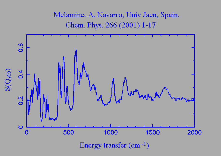 Inelastic Neutron Scattering spectrum of Melamine, C₆H₉N₃, measured on the TFXA instrument.
