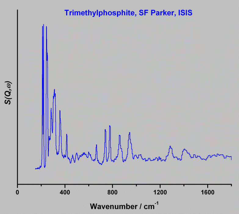 Inelastic Neutron Scattering spectrum of Trimethylphosphite, OP(CH₃)₃, measured on the TOSCA instrument.