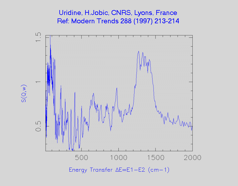 Inelastic Neutron Scattering spectrum of Uridine, C₉ H₁₂ N₂ O₆, measured on the TFXA instrument.
