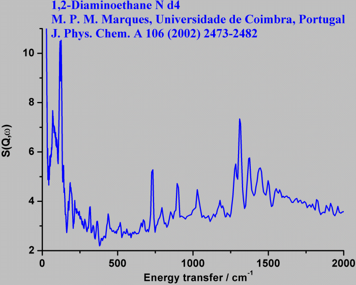 Inelastic Neutron Scattering spectrum of 1,2-Diaminoethane N-D4, D₂N-(CH₂)n-ND₂ n=ethane, measured on the TOSCA instrument.