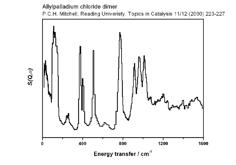 Inelastic Neutron Scattering spectrum of Allylpalladium chloride dimer, [(C₃H₆)PdCl]₂, measured on the TFXA instrument.