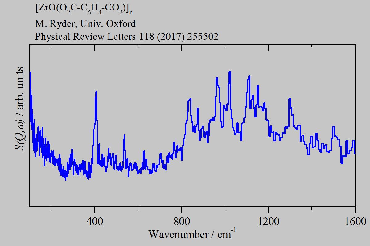 Inelastic Neutron Scattering spectrum of MIL 140A, [ZrO(O2C-C6H4-CO2)]n, measured on the TOSCA instrument.