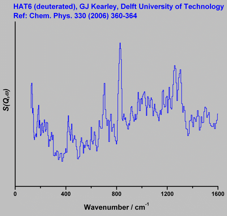 Inelastic Neutron Scattering spectrum of HAT6D, C₅₄H₆D₇₂O₆, measured on the TOSCA instrument.