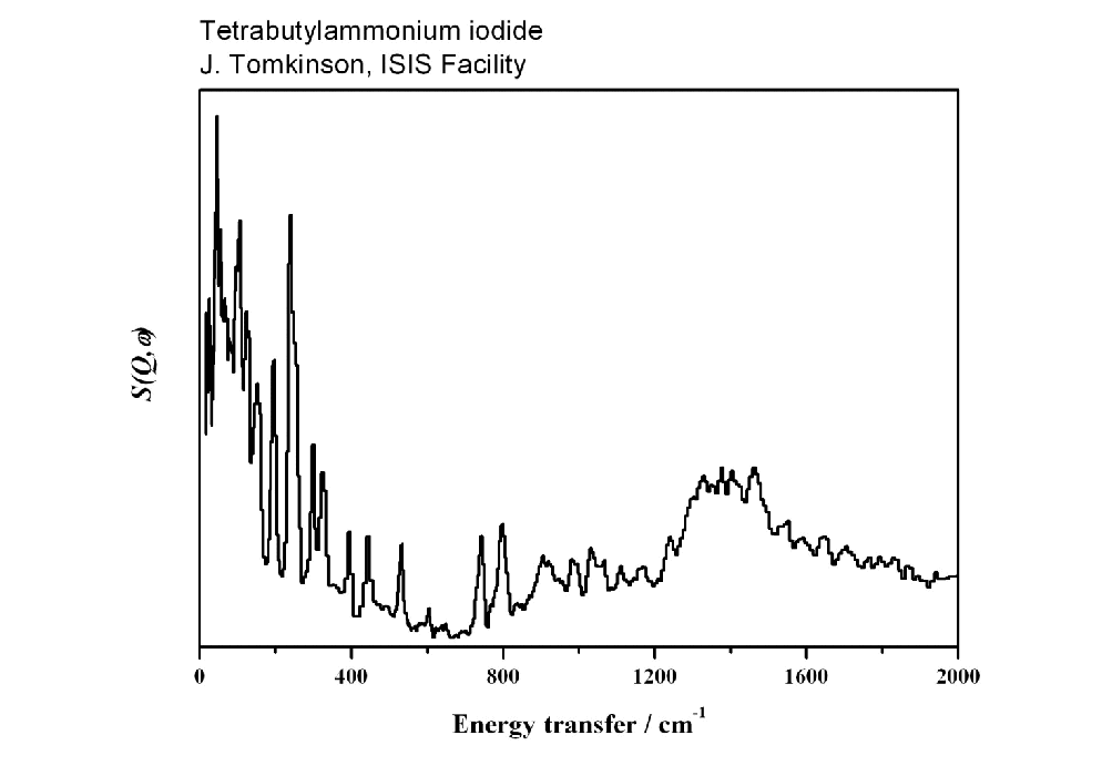 Inelastic Neutron Scattering spectrum of Tetrabutylammonium iodide, [CH₃(CH₂)₃]₄, measured on the TFXA instrument.
