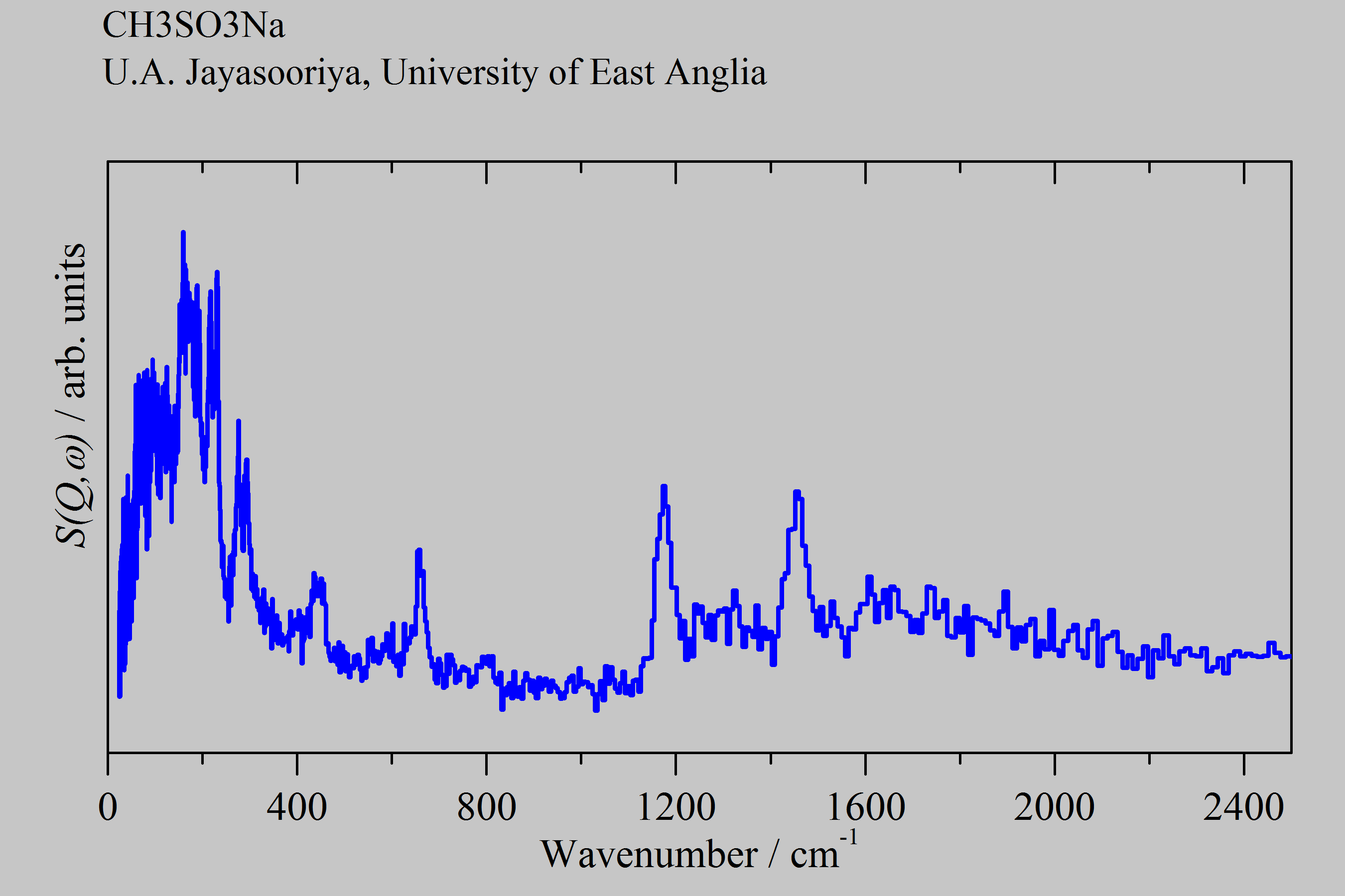 Inelastic Neutron Scattering spectrum of Sodium methylsulphate, CH₃SO₃Na, measured on the TOSCA instrument.