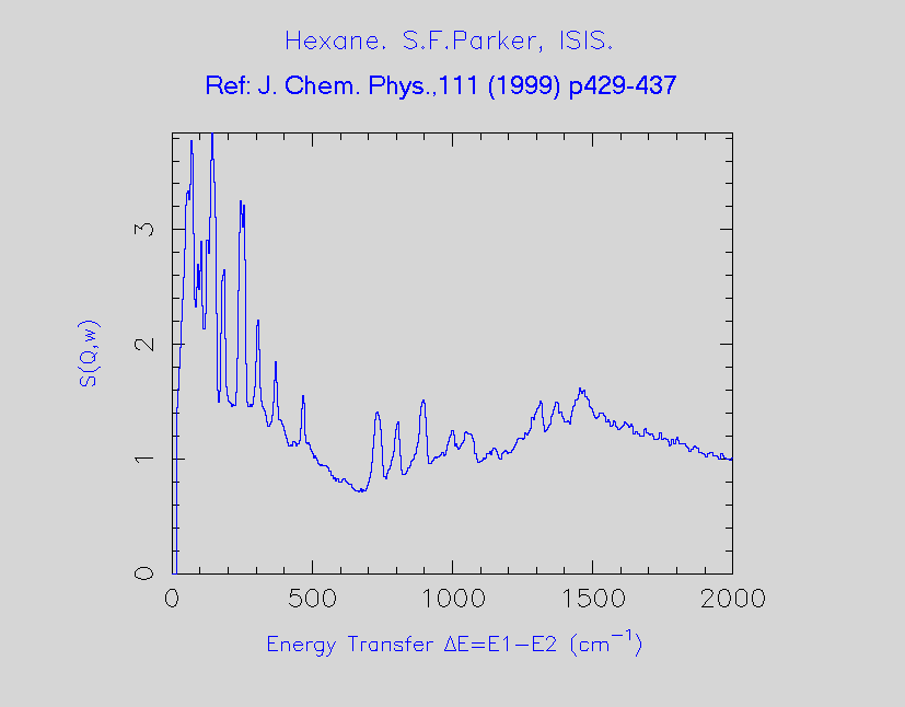 Inelastic Neutron Scattering spectrum of Hexane, C₆H₁₄, measured on the TFXA instrument.