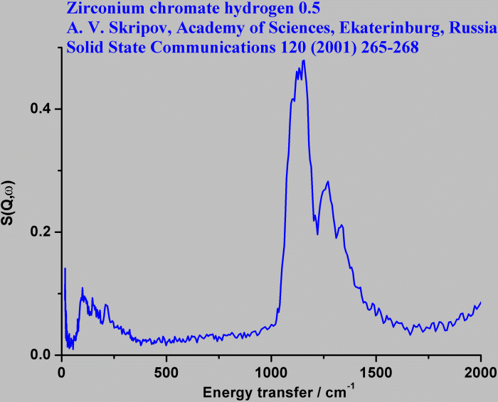 Inelastic Neutron Scattering spectrum of Zirconium chromium hydrogen 0.5, ZrCrH0.5, measured on the TFXA instrument.