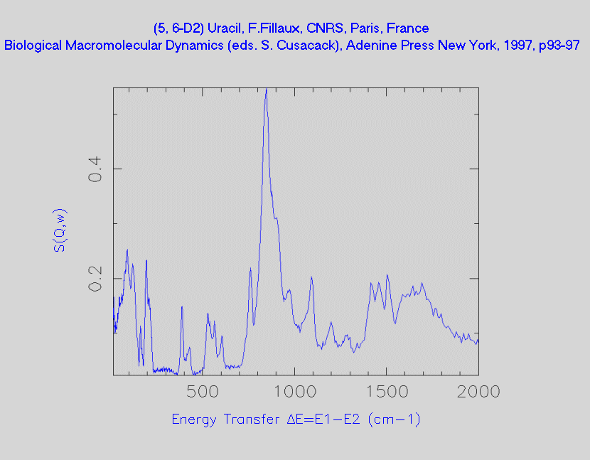 Inelastic Neutron Scattering spectrum of Uracil (5,6-D2), C₄ H₂ D₂ N₂ O₂, measured on the TFXA instrument.