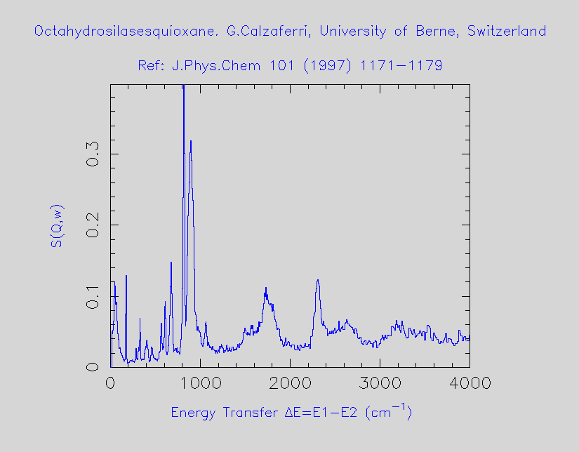 Inelastic Neutron Scattering spectrum of Octahydrosilasesquioxane, H₈Si₈O₁₂, measured on the TFXA instrument.