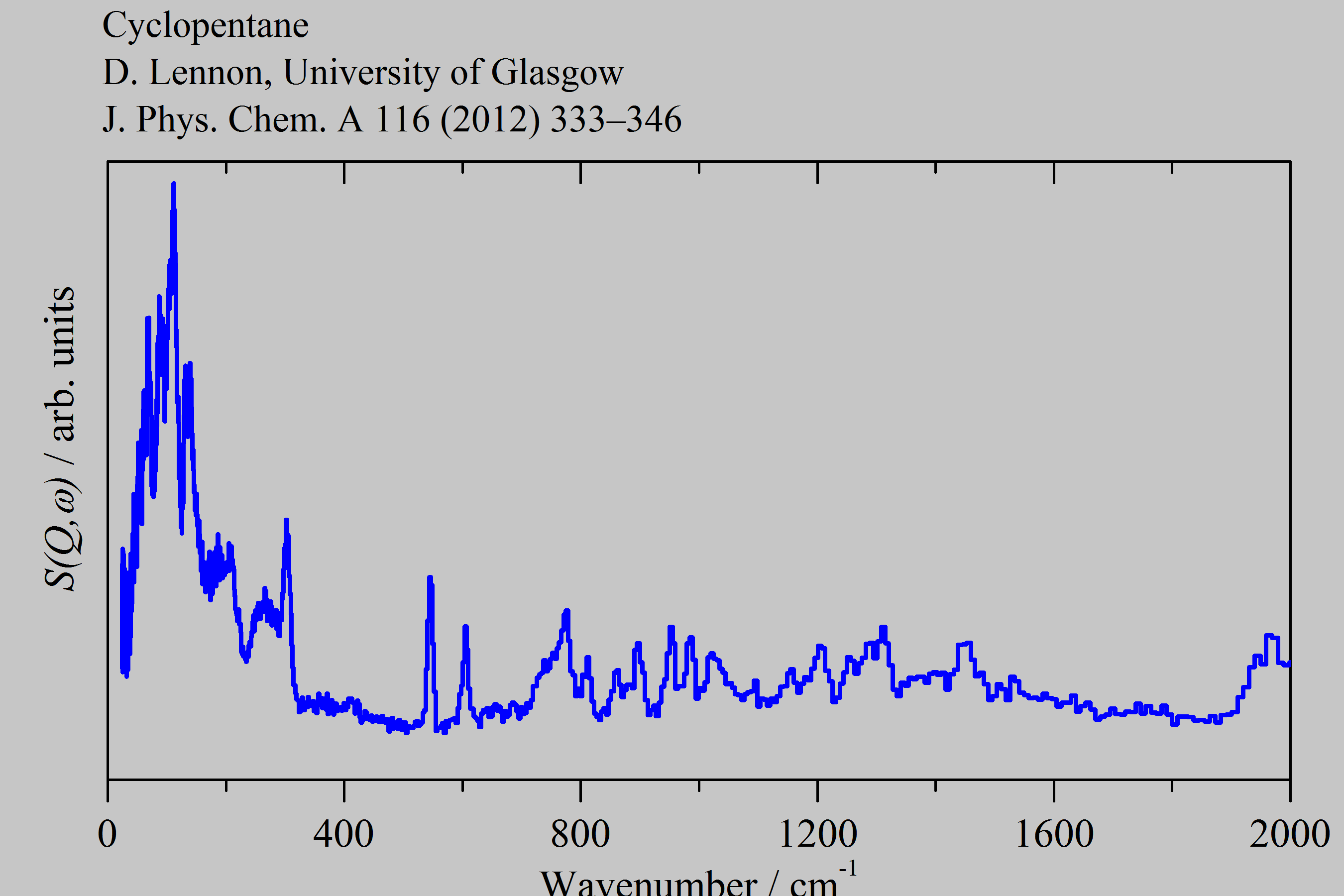 Inelastic Neutron Scattering spectrum of Cyclopentane, C₅H₁₀, measured on the TOSCA instrument.