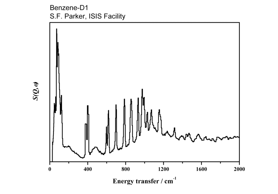 Inelastic Neutron Scattering spectrum of Benzene-D1, C₆H₅D, measured on the TOSCA instrument.