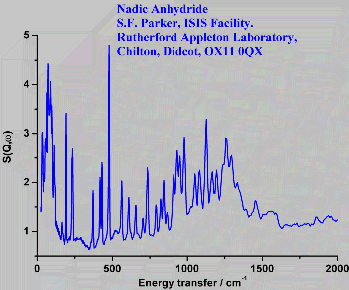 Inelastic Neutron Scattering spectrum of Nadic anhydride, C₉H₈D₃, measured on the TOSCA instrument.