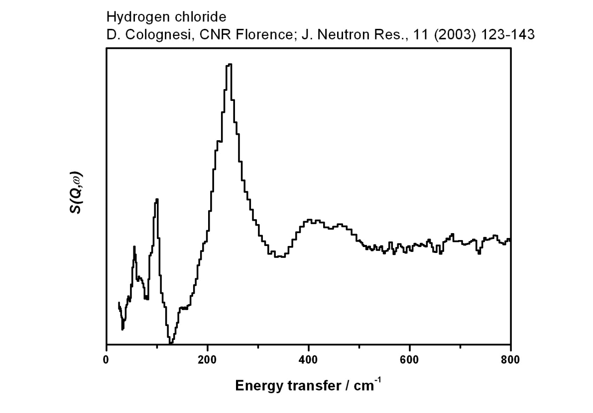 Inelastic Neutron Scattering spectrum of Hydrogen chloride, HCl, measured on the TOSCA instrument.