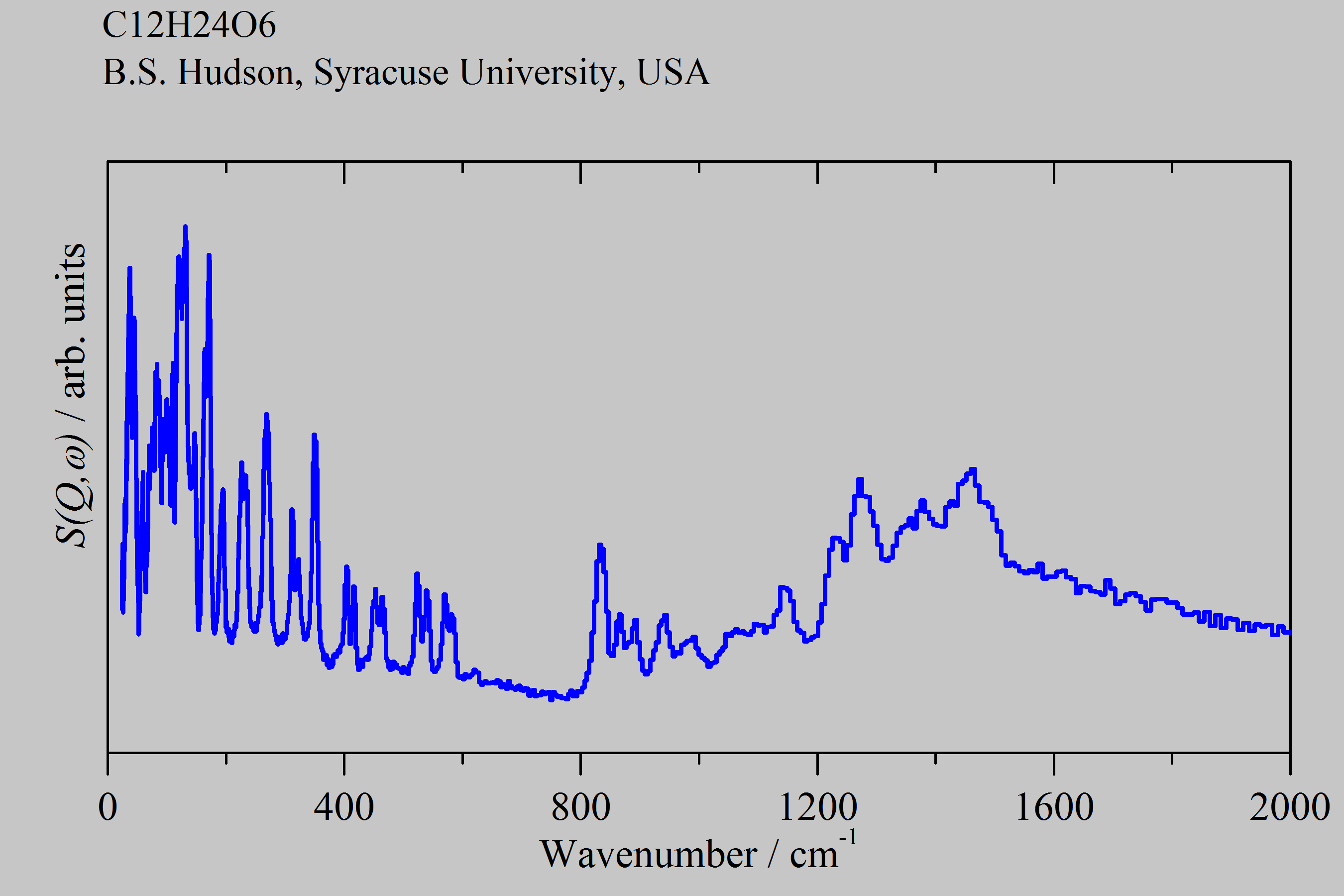 Inelastic Neutron Scattering spectrum of 18-Crown-6, C₁₂H₂₄O₆, measured on the TOSCA instrument. 1,4,7,10,13,16-Hexaoxacyclooctadecane.