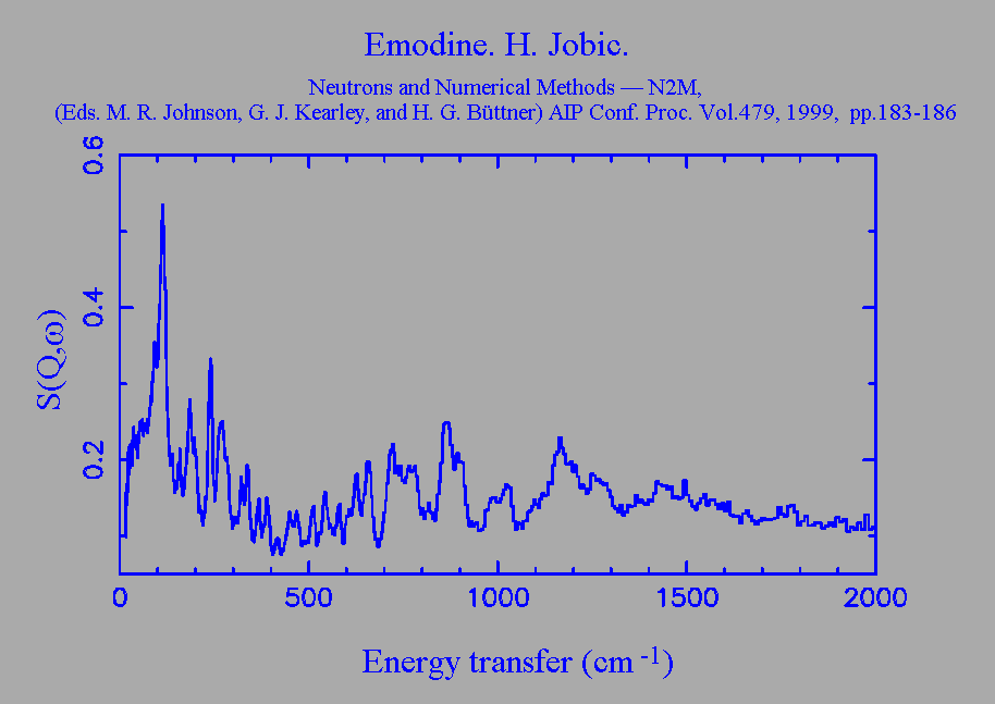 Inelastic Neutron Scattering spectrum of Emodine, C₁₅H₁₀O₄, measured on the TFXA instrument.