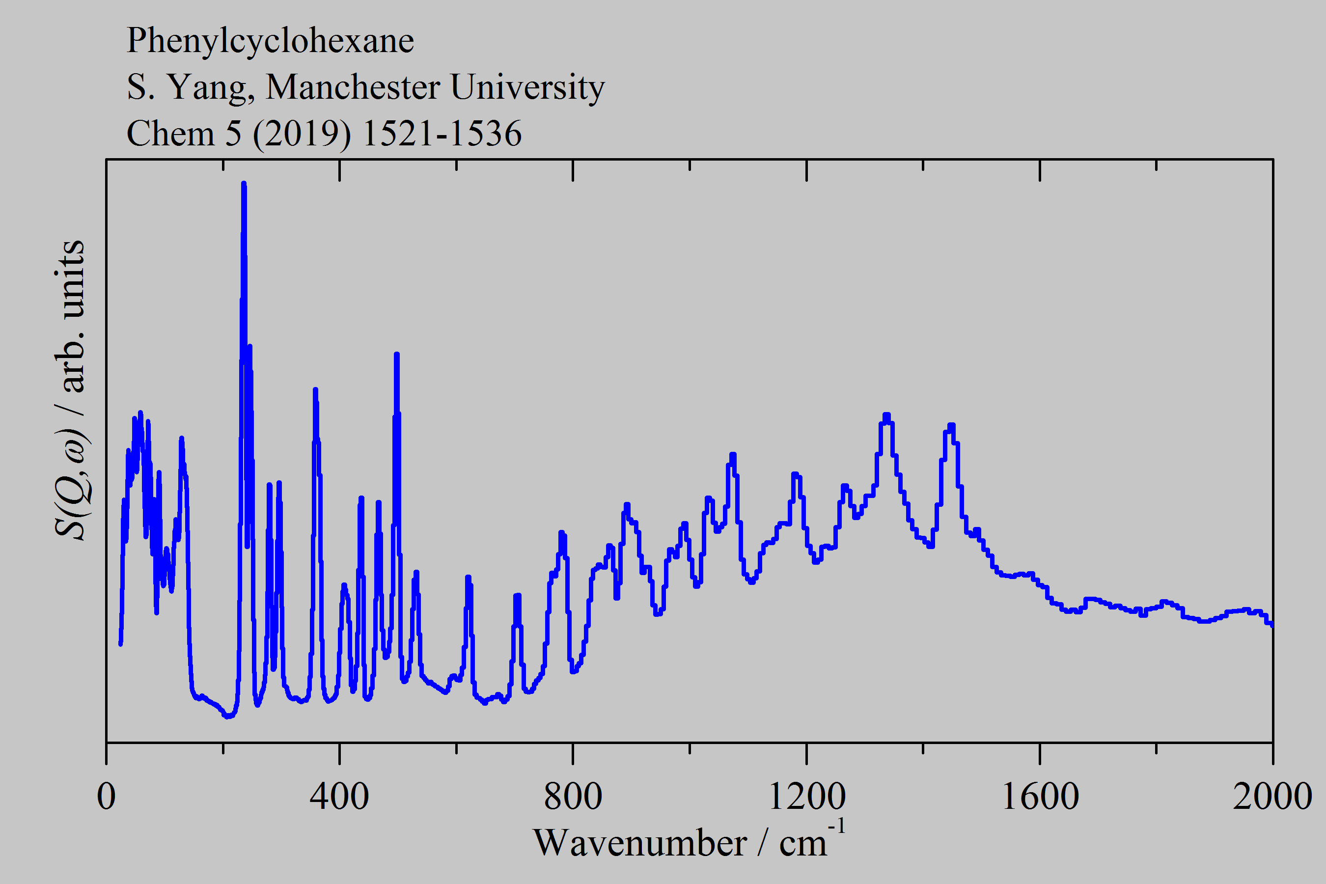 Inelastic Neutron Scattering spectrum of Phenylcyclohexane, C12H16, measured on the TOSCA instrument.