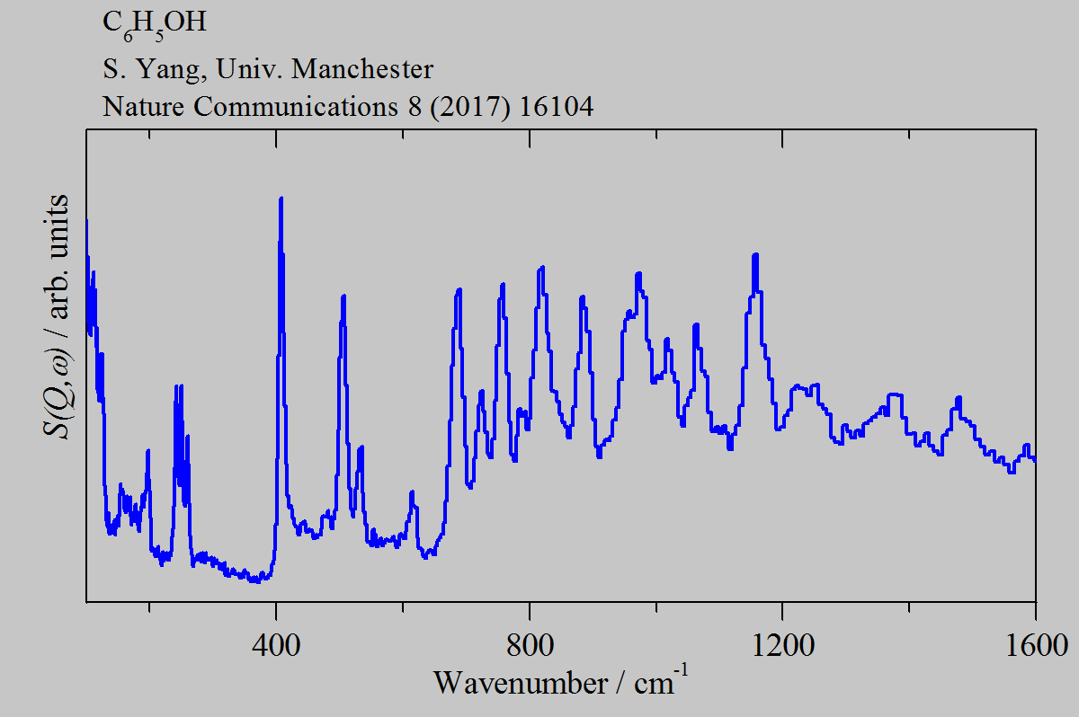 Inelastic Neutron Scattering spectrum of Phenol, C6H5OH, measured on the TOSCA instrument.
