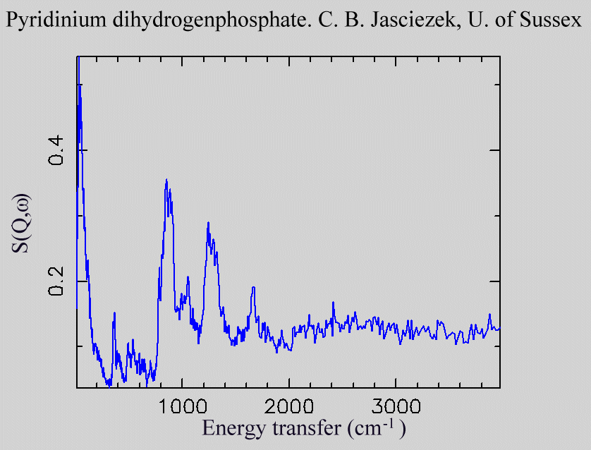 Inelastic Neutron Scattering spectrum of Pyridinium dihydrogenphosphate, C₅H₈NO₄P, measured on the TFXA instrument.