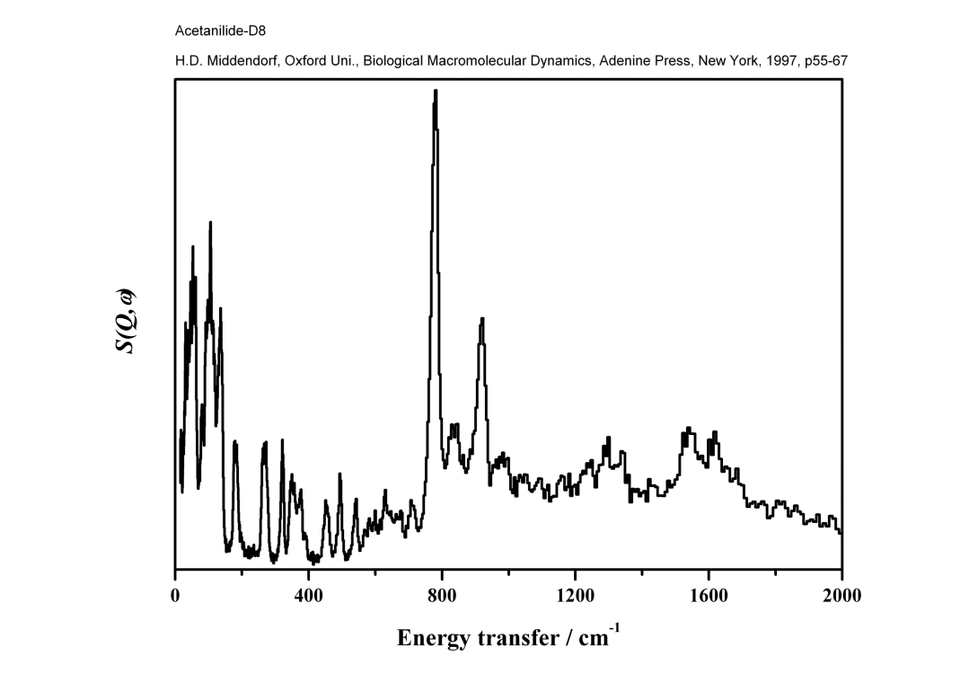 Inelastic Neutron Scattering spectrum of Acetanilide-D8, C₆D₅NHCOCD₃, measured on the TFXA instrument.