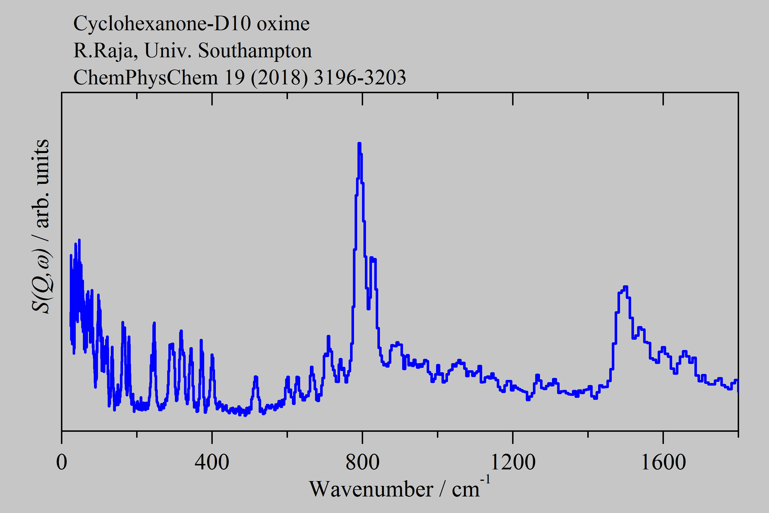 Inelastic Neutron Scattering spectrum of Cyclohexanone-D10 oxime, C6D10H1NO, measured on the TOSCA instrument.