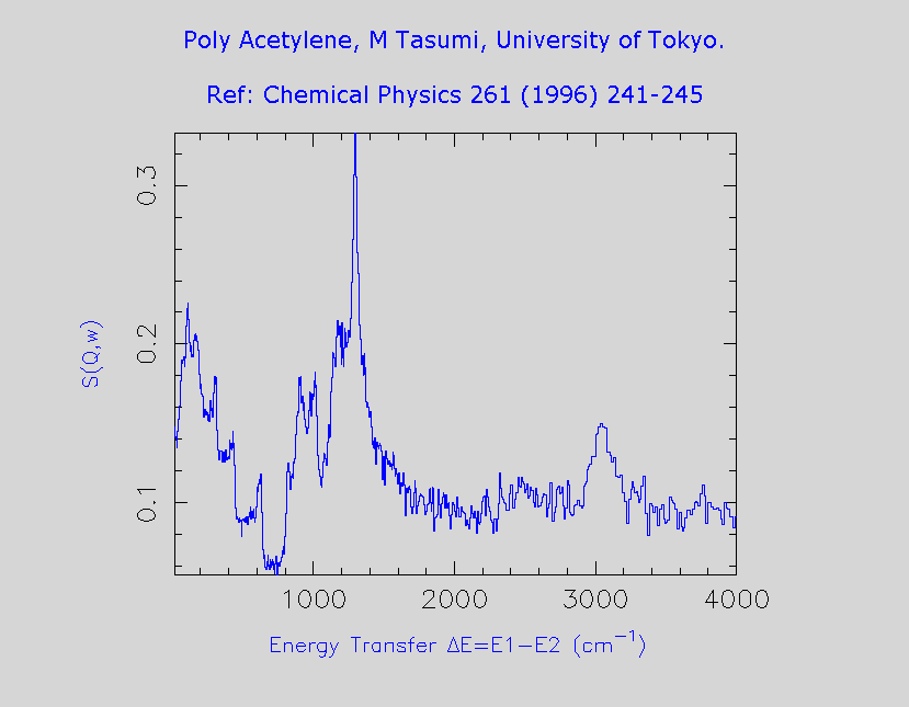 Inelastic Neutron Scattering spectrum of Polyacetylene, (CH)n, measured on the TFXA instrument.