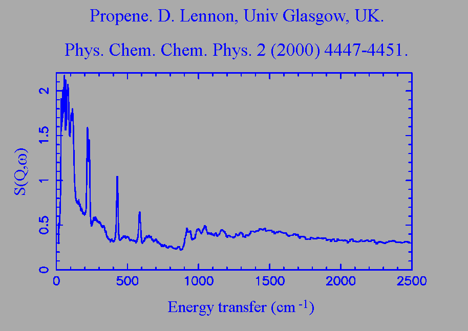 Inelastic Neutron Scattering spectrum of Propene, C₃H₆, measured on the TFXA instrument.
