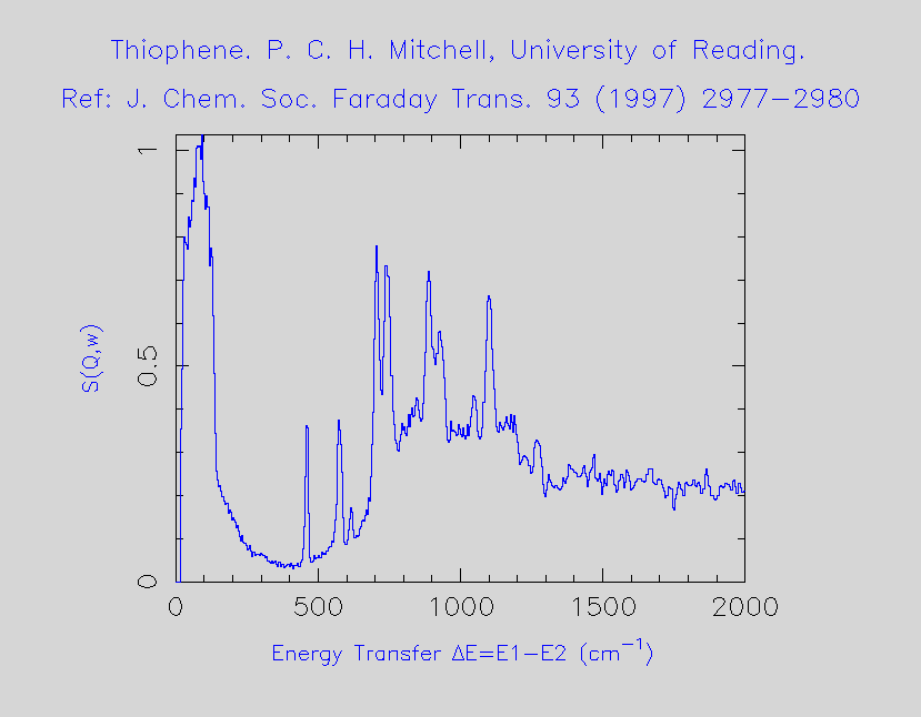 Inelastic Neutron Scattering spectrum of Thiophene, C₄H₄S, measured on the TFXA instrument.