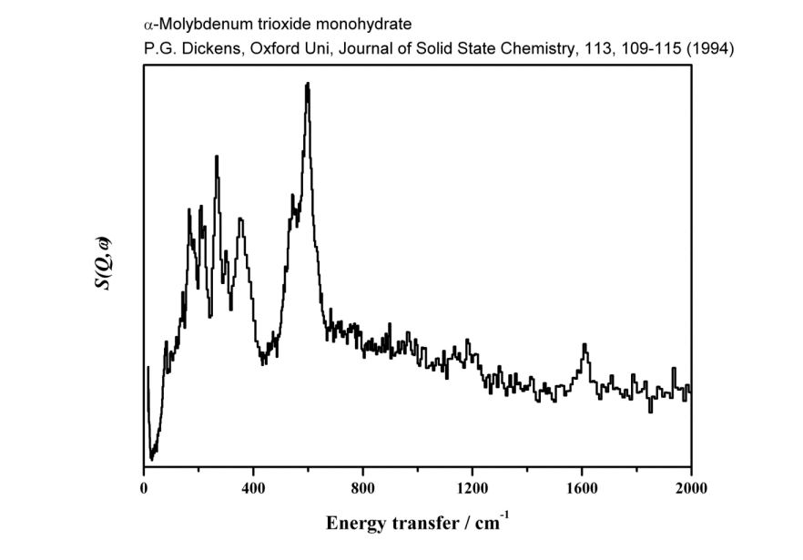 Inelastic Neutron Scattering spectrum of Molybdenum trioxide monohydrate, a-MoO3.H2O, measured on the TFXA instrument. alpha phase.
