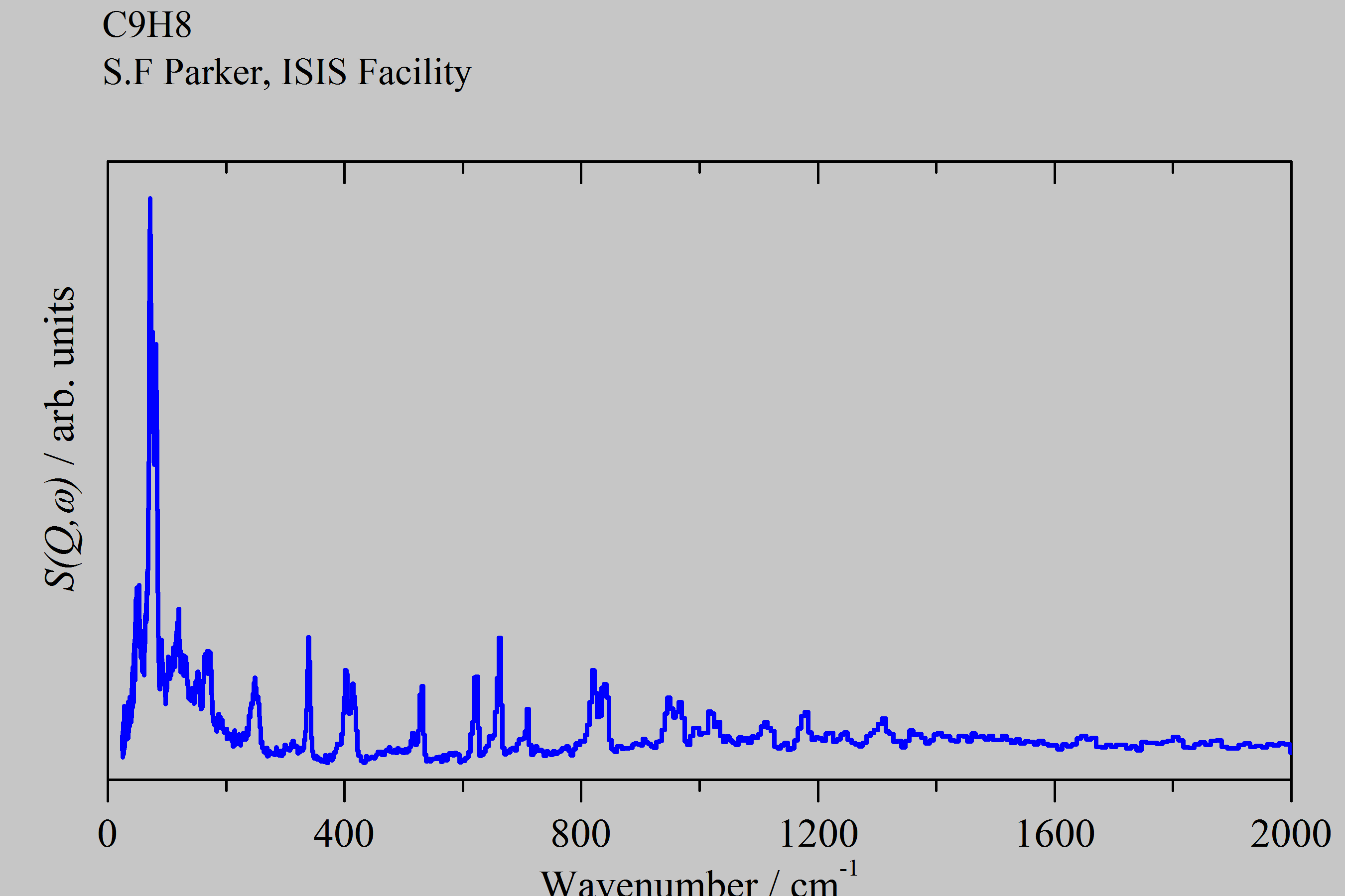 Inelastic Neutron Scattering spectrum of Ethynyltoluene, C₉H₈, measured on the TOSCA instrument. 4-Ethynyl-1-methylbenzene.